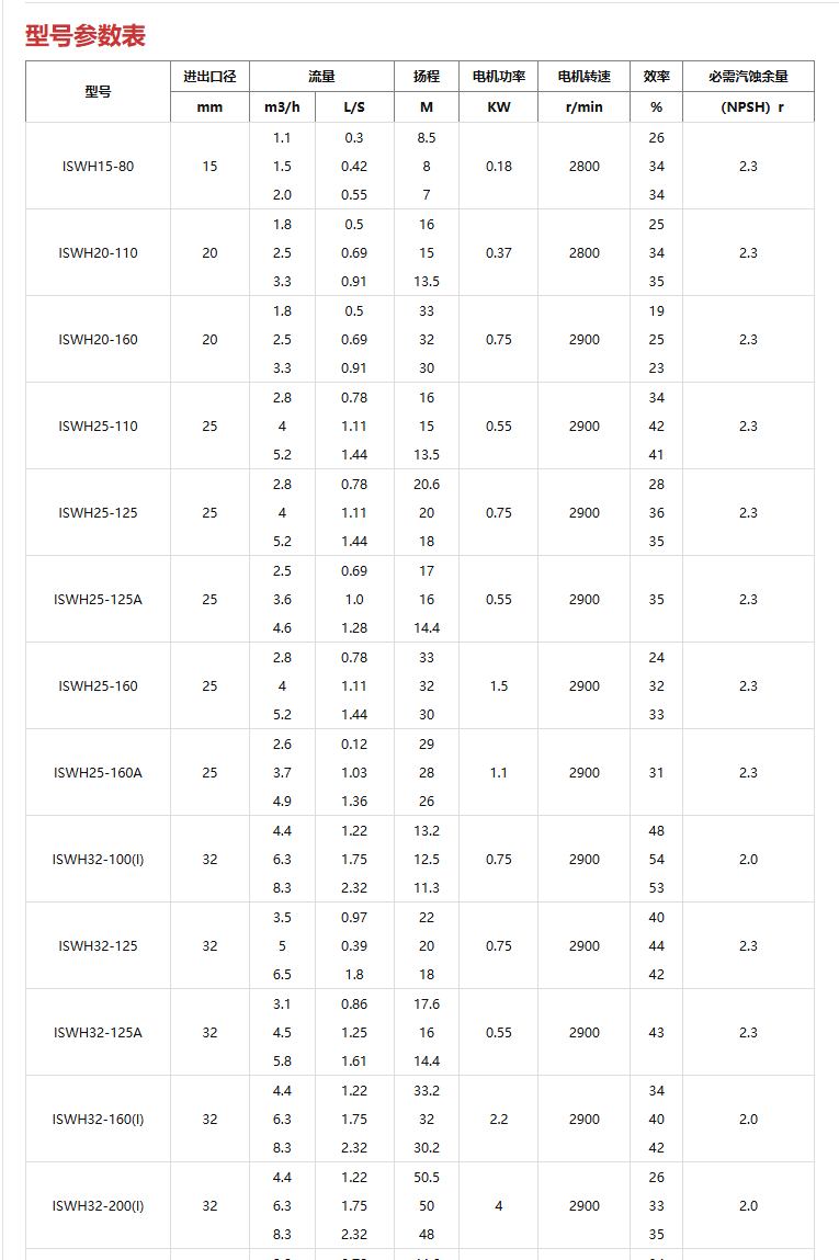 ISWH型离心泵可以根据客户实际工况需要,自由选择普通不锈钢、不锈钢304、不锈钢316等等标号材质。
